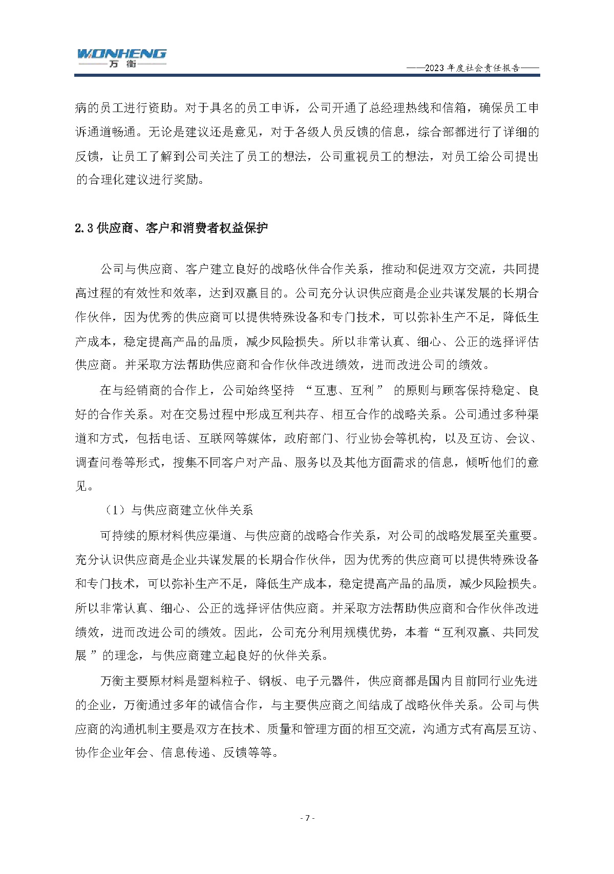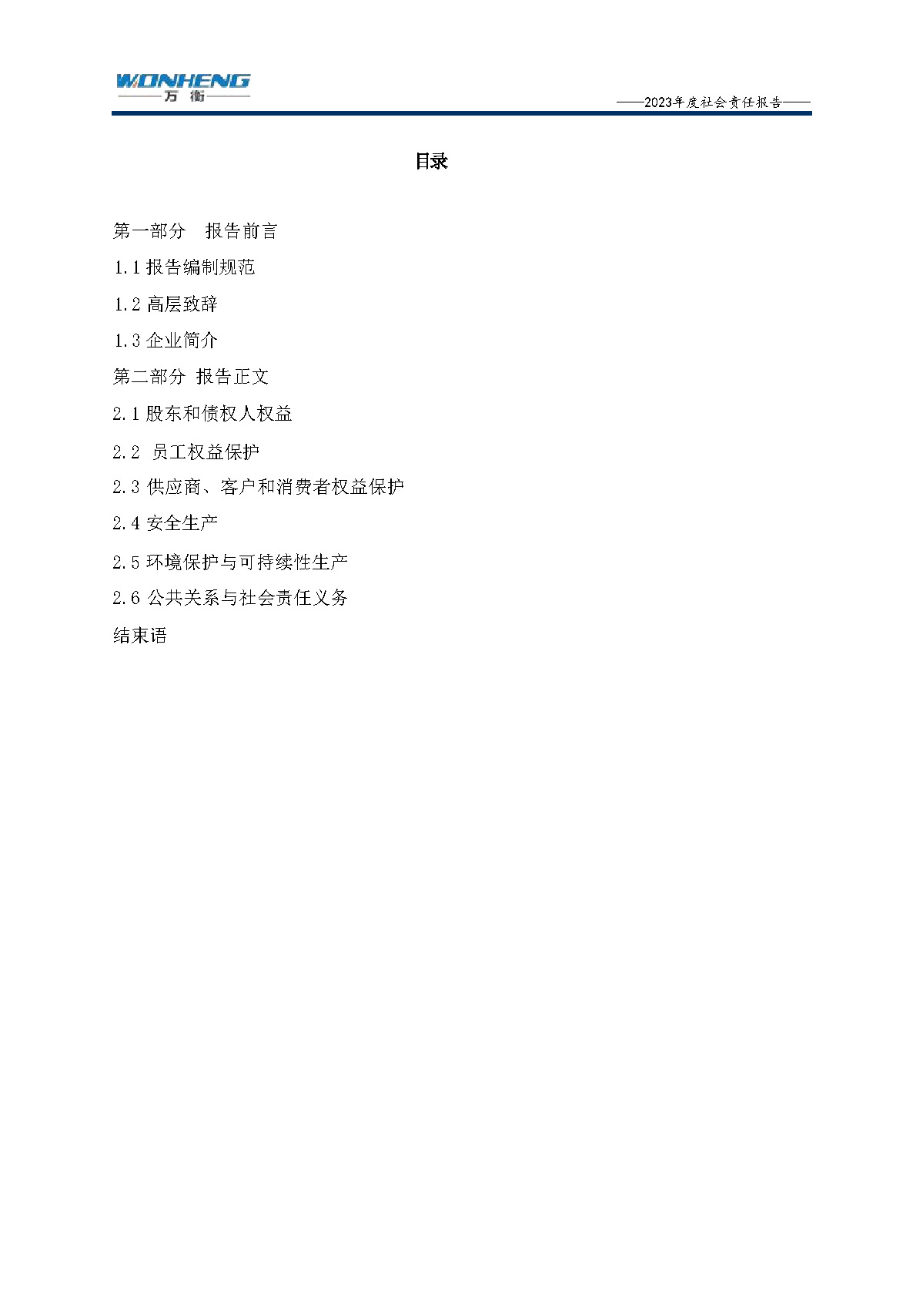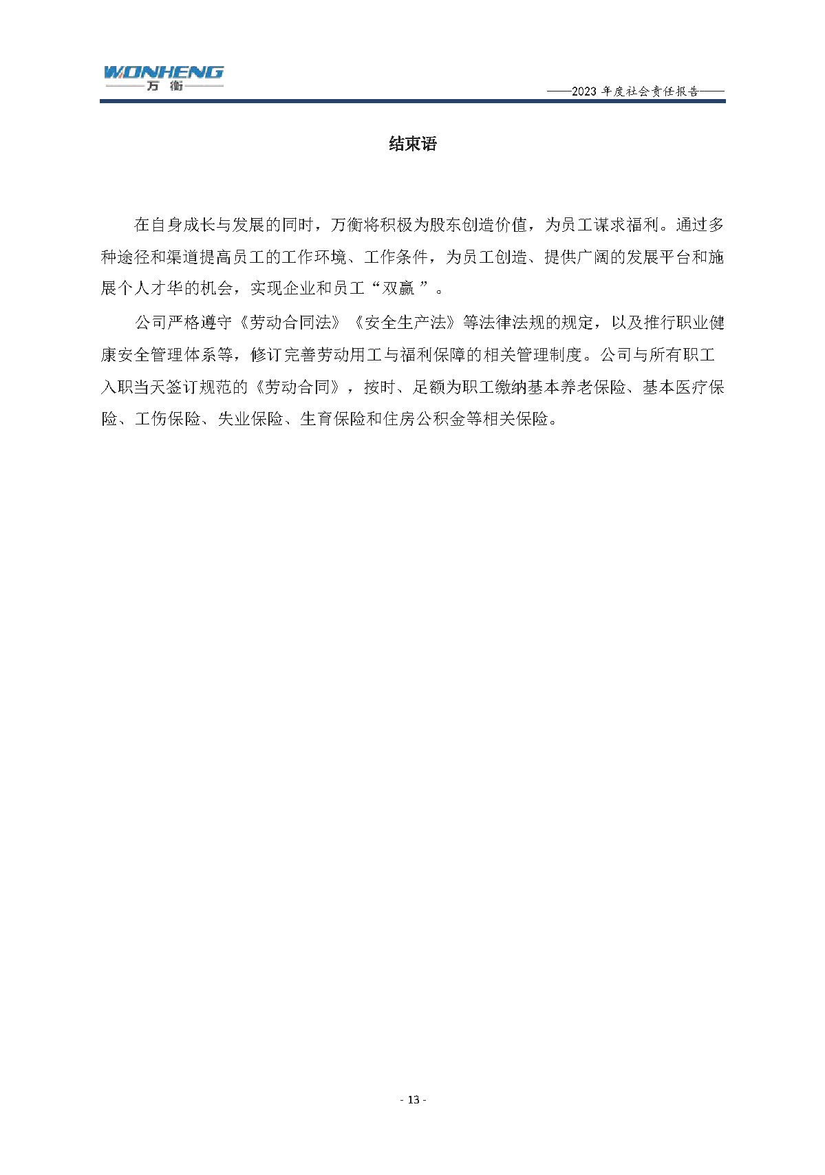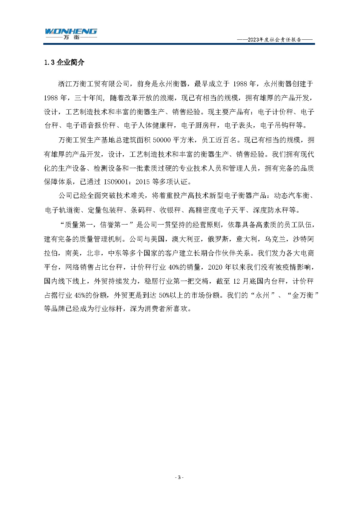 浙江萬衡工貿(mào)有限公司2023年度社會(huì)責(zé)任報(bào)告